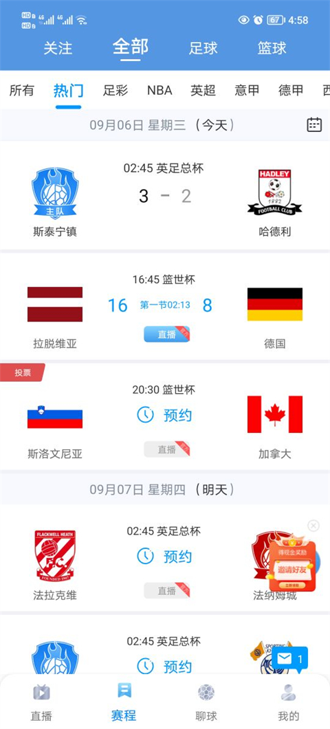 5、具备专业的新闻内容推送功能,根据你的喜好推荐你关注的比赛结果,十分贴心。