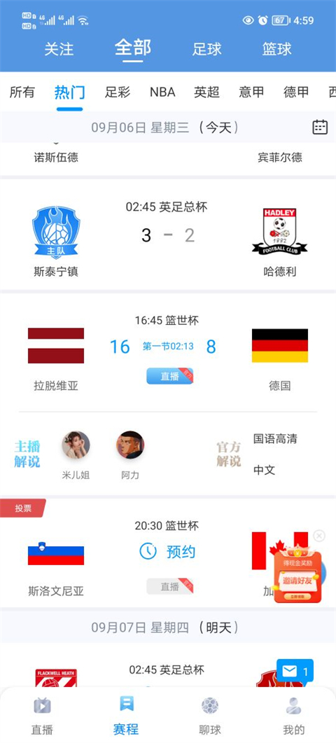 1、进入到软件之后点击赛程界面,找到自己想要看的比赛。