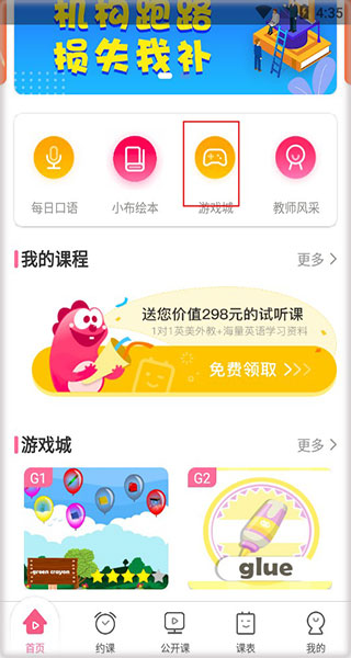 3、用户要是觉得学习类了,可以点击游戏商城,这里有英语小游戏;