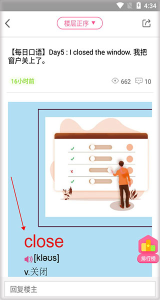 1、下载安装app,打开软件进入首界面,这里有四个功能栏,点击每日口语;