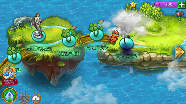 进入岛闯关界面,这是新手第一关,之后可以在该界面任意重温已经通过的关卡。