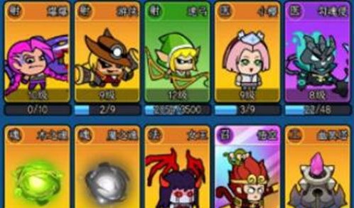 第一套阵容:速弓+悟空+幽冥塔+魔之魂+勾魂+女王+游侠+勾魂使+木之魂+爆爆