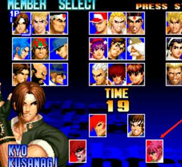 除了草薙京、八神庵、特瑞博加德等玩家耳熟能详的名字外、来自饿狼传说系列的布鲁玛丽、山崎龙二、KOF原创角色七枷社等新面孔也将率队参战。同时,玩家一开始就可以使用NEOGEO版中的隐藏角色[暴走八神庵]和[觉醒莉安娜],当然,作为KOF的特色之一,信息量巨大的赛前斗嘴内容让任何角色之间的对战都不会冷场。