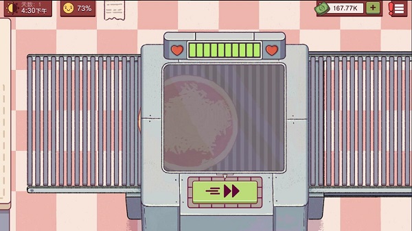 首先我们桌上角的太阳代表时间,当到达9:00后我们就下班了。旁边数值代表客人的耐心度,当跌到50%的时候客人就不会给小费了。右边是我们的金额。