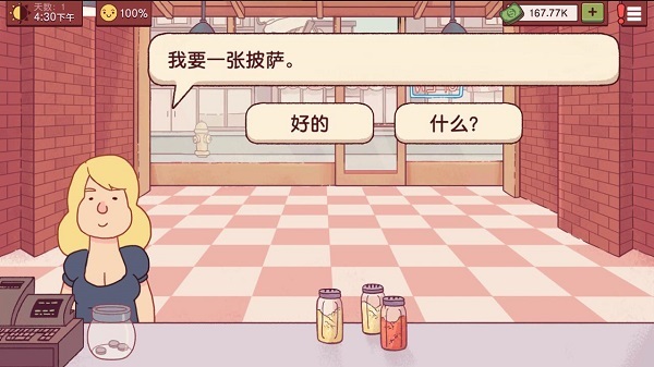 客人提完要求之后你点了“好的”会收到一笔钱,做披萨的过程中右上角会相应扣除你做披萨的材料钱,最后给了客户披萨,他给你的钱是小费,没有就是没给小费,原因可能是遇到小偷或者心情值低于40%,被扣8块钱肯定是少了什么或者多了什么材料,放心,前期他给了钱,所以其实扣的总值不是8块