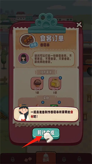 可看到详细的食客订单、任务需求和奖励内容,点击【前往合成】,