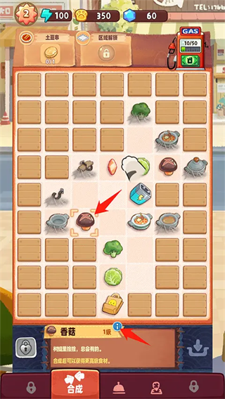 如图,订购的食物和厨具都在方框里了,可以开始合成了,