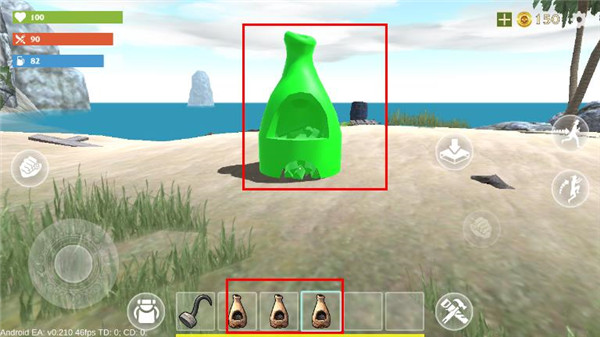 在首页中会有很多虚拟按键,拳头形状的攻击,圆形的是移动按钮,其他两个分别是背包和道具制作;