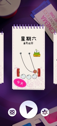 游戏内每一天都有着不同的关卡玩法,玩家需通过割绳子来收集星星;