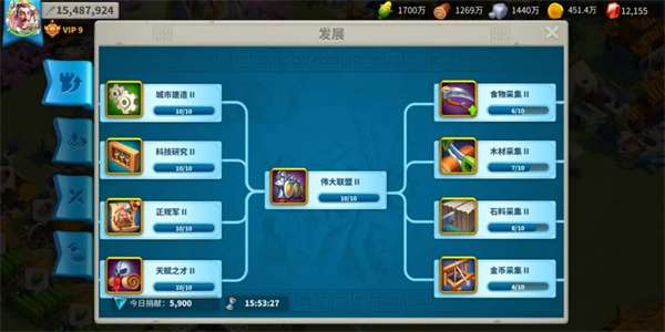 在这里给大家推荐一个整体的联盟科技优先次序:发展→领土→战争→联盟技能。
