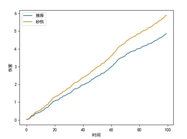 可以在坐标轴内对秒伤和推荐秒伤画两条曲线,纵坐标是伤害,横坐标是时间