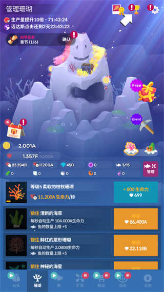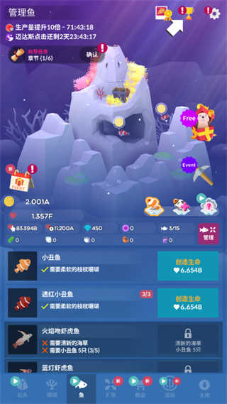 《深海水族馆》正版真是款超棒的休闲游戏。精美的深海画面,灵动的海洋生物,带来极致视觉享受。玩法轻松,通过收集水滴解锁新生物,过程充满乐趣。还能随心装饰水族箱,打造专属海底世界。无论是解压还是打发时间,它都是绝佳选择。