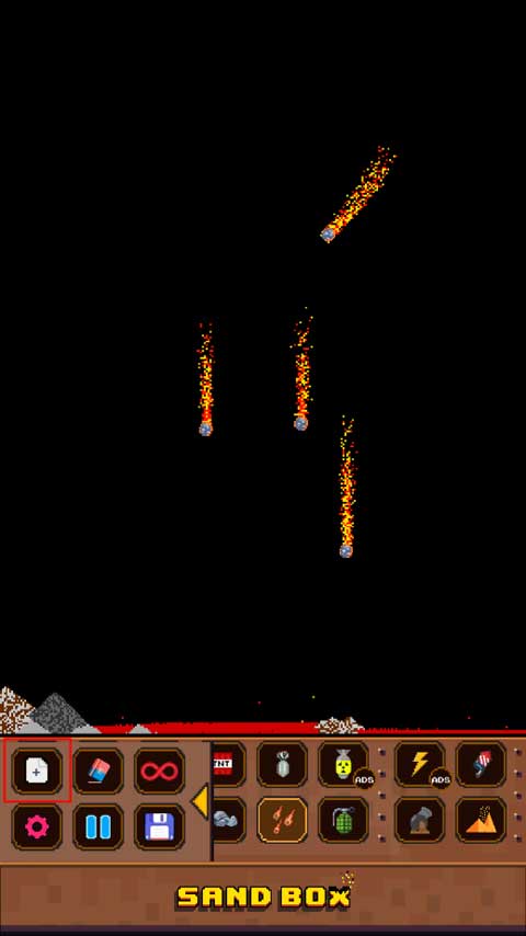 如果想要重新创建一个新的沙盒世界,则可以点击左边红色框框选中的按钮清空上方所有的东西。
