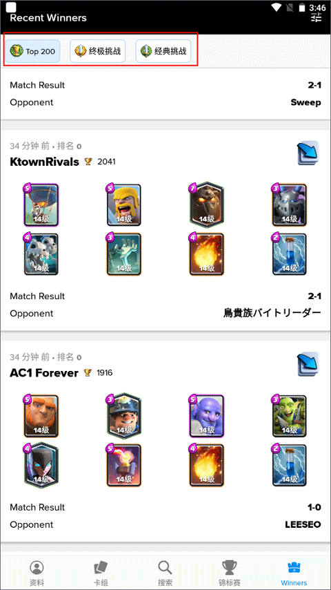 此处给出了前200名获胜者、终极挑战获胜者以及经典挑战获胜者的名单信息。