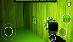 点击“play”即可进入游戏。进入主界面后,左侧设有虚拟按键,用于控制角色前后左右移动;右侧的“E”键,可实现射击或开门操作。在右侧靠左边的位置,设有换灯具按钮,点击可照亮场景。而主界面最上方的按钮,其功能是抓取碎片。