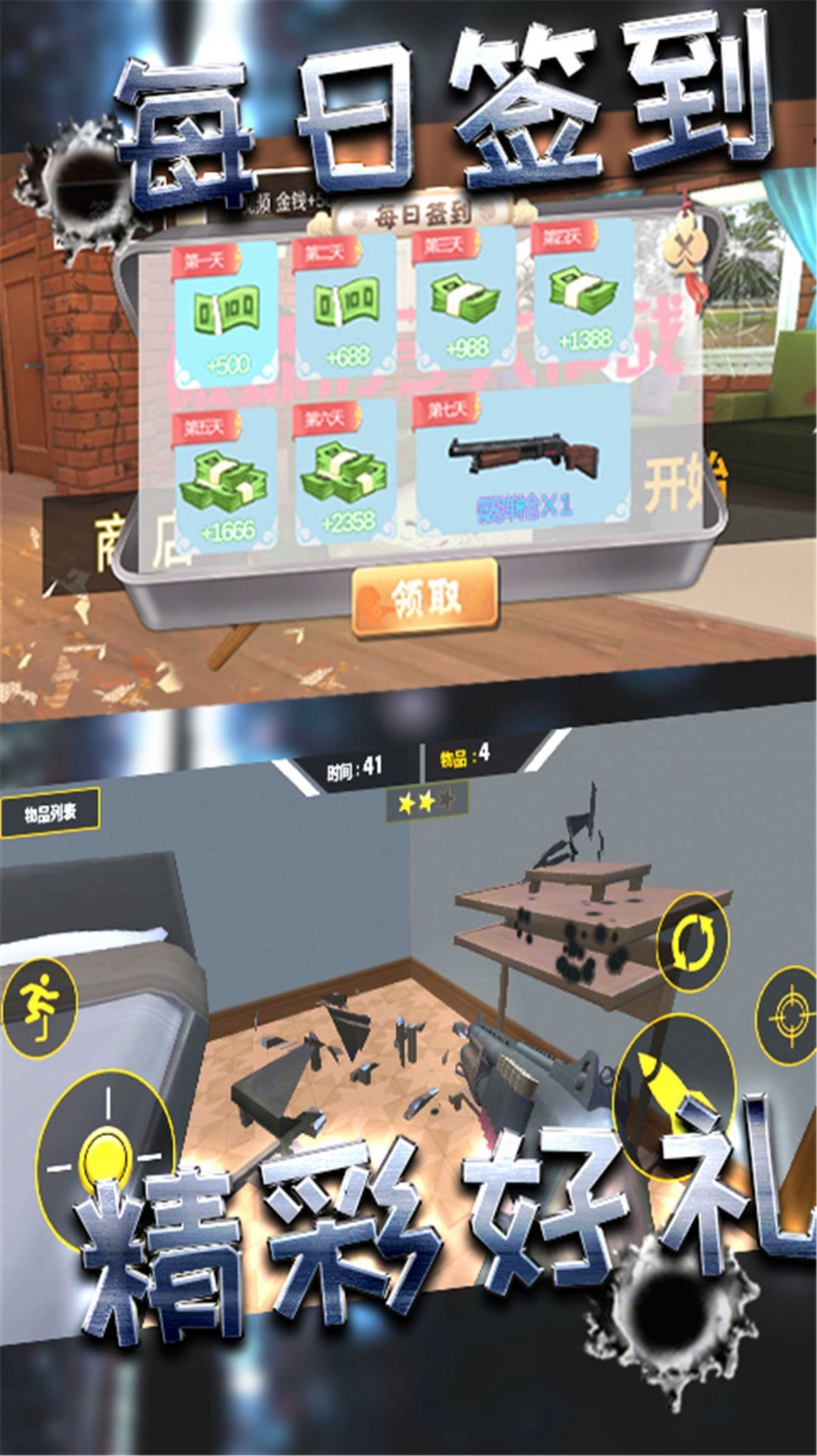 1. 拿起你手中的枪支武器,把房子里的所有东西都彻底摧毁、消灭干净。
