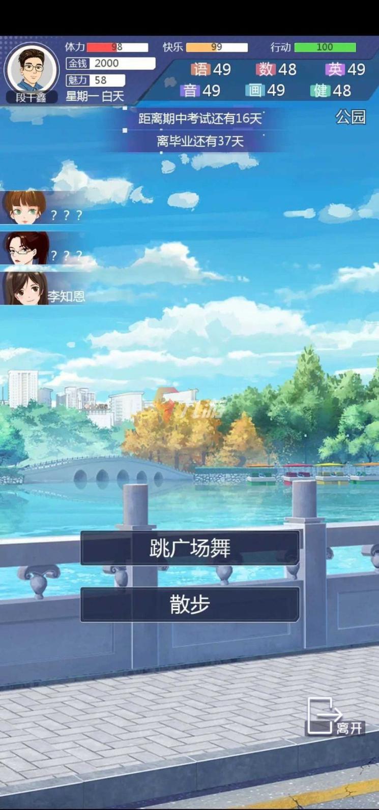 游戏当中大家将会遇到6个女生,其中如果遇到了自己喜欢的类型。那么记得一点要点偶遇按钮,这样才可以和她们聊天增进感情,同时游戏内小伙伴们只有40天的发展时间,所以说时间是非常重要的,要规划好这一周打算感情增进到哪一个阶段。