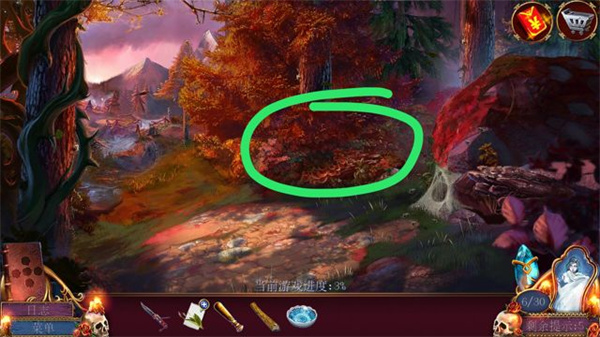在左侧点击,获取荆棘丛中的小枝条,利用这个小枝条来解脱手套,然后使用手套拉动荆棘(从屏幕中央的荆棘尖端开始,向屏幕边缘的荆棘底部滑动),进入下一个场景。