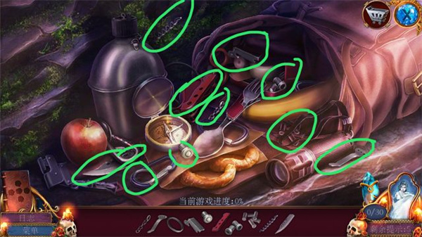 点击书包和左侧刀刃上的纸,所有的隐藏物体就都显示出来了,完成后得到刀