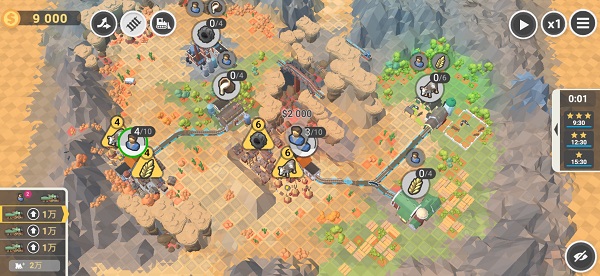 第二个难点:不要摧毁超过5000的物体,尽量避开石头树林等物体,可以适当绕路,也要注意绕路资金缺乏。