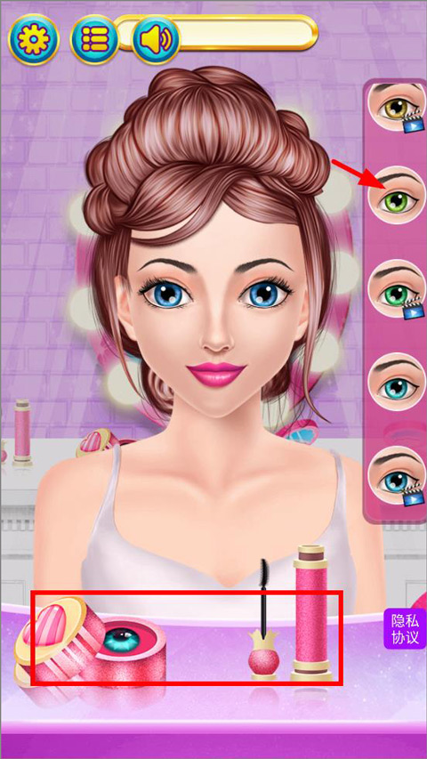 在完成灰姑娘的护肤步骤之后,玩家可以开启美容化妆的游戏模式。在这里,玩家需依据个人的审美观为灰姑娘进行化妆,首先应从眼部妆容着手。