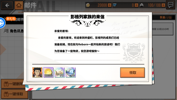 在邮件里可以领取登录礼包