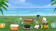 关卡需要布置露营场地,首先将地上的垃圾清理出去