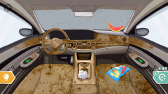然后点击左侧的绿色按钮,持续清理座椅下方的杂物。同时,打开副驾驶的抽屉,里面的东西也需要整理,可以使用蓝色的吸尘器进行清理。