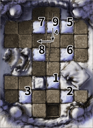 接下来,将右上角的雪块移到中央,并将其铲入坑中。