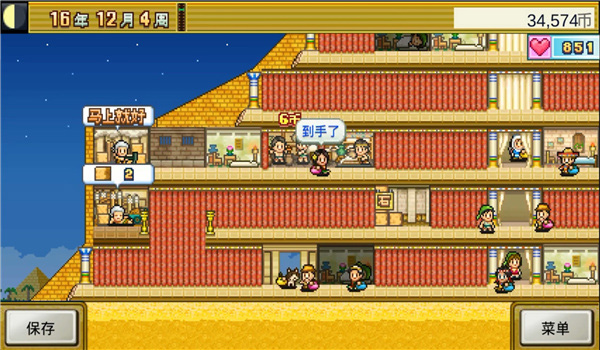 在开始运营后,游戏的玩法与其他开罗模拟经营游戏并无二致。你需要雇用勤奋的员工,并为他们分配合适的工作岗位。随后,通过扩建商店来提高销售额,利用剩余资金优化金字塔环境,确保游客获得最佳体验。游客的满意度会被转化为特殊的“爱心”货币,玩家可以使用这些爱心来提升设施的性能或增强员工的能力。