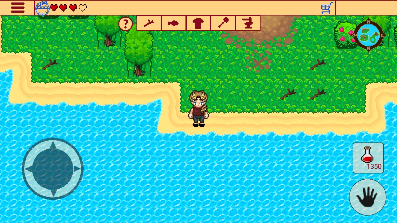 初次进入游戏时,系统会引导玩家完成基础操作教学。首先点击主界面中央的"玩"按钮开始冒险,游戏采用直观的双摇杆操控方式:左下角的虚拟摇杆控制角色移动,右下角的交互按钮用于拾取物品和与环境互动。在探索过程中,玩家可以随时点击屏幕上的问号图标获取游戏提示,这些提示会帮助你更快地适应荒岛环境。