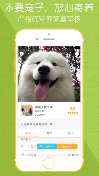 通过GPS定位城市,查找身边的宠物寄养家庭,覆盖全国300+城市;