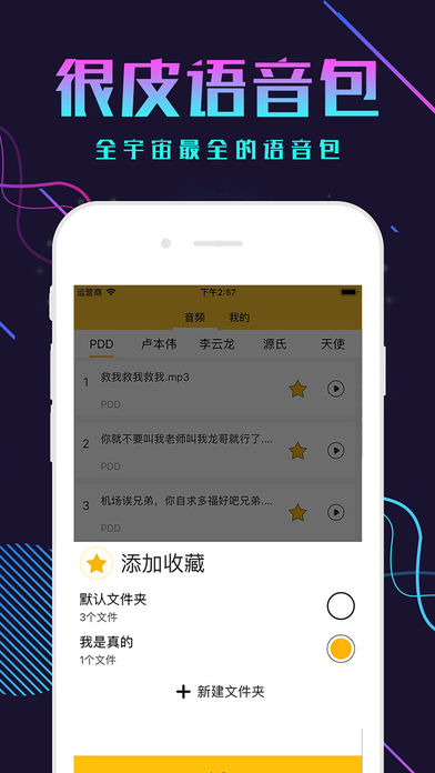 还在为变声效果而烦恼吗?传统变声方式需要提前录制语音文件,操作繁琐且效果有限。最皮语音包app彻底改变了这一现状,让吃鸡变声变得前所未有的简单。无需任何录音准备,直接在聊天窗口内就能完成变声操作。只需按住语音按钮说话,然后选择喜欢的语音特效即可发送。看似普通的语音消息,实则暗藏玄机,包含了各种意想不到的声效变化。软件提供数十种酷炫特效任君选择,从科幻感十足的变形金刚音效,到恐怖氛围的幽灵音效,再到成熟稳重的大叔音效,应有尽有。加入最皮语音包app的大家庭,让你在吃鸡战场上既能展现技术实力,又能玩转声音魔法,成为最靓的仔!
