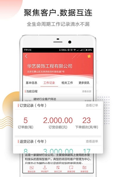 红圈订单是一款功能强大且易于使用的专业订单管理软件,专为现代企业量身打造。通过这款软件,企业可以高效地管理销售订单、库存以及产品生命周期,实现业务流程的数字化和智能化。它不仅能够帮助企业精准掌握销售数据和库存信息,还能大幅提升办公效率,减轻员工工作负担。无论是客户还是商家,都能通过红圈订单实现便捷的订单管理,让协作更加顺畅。
