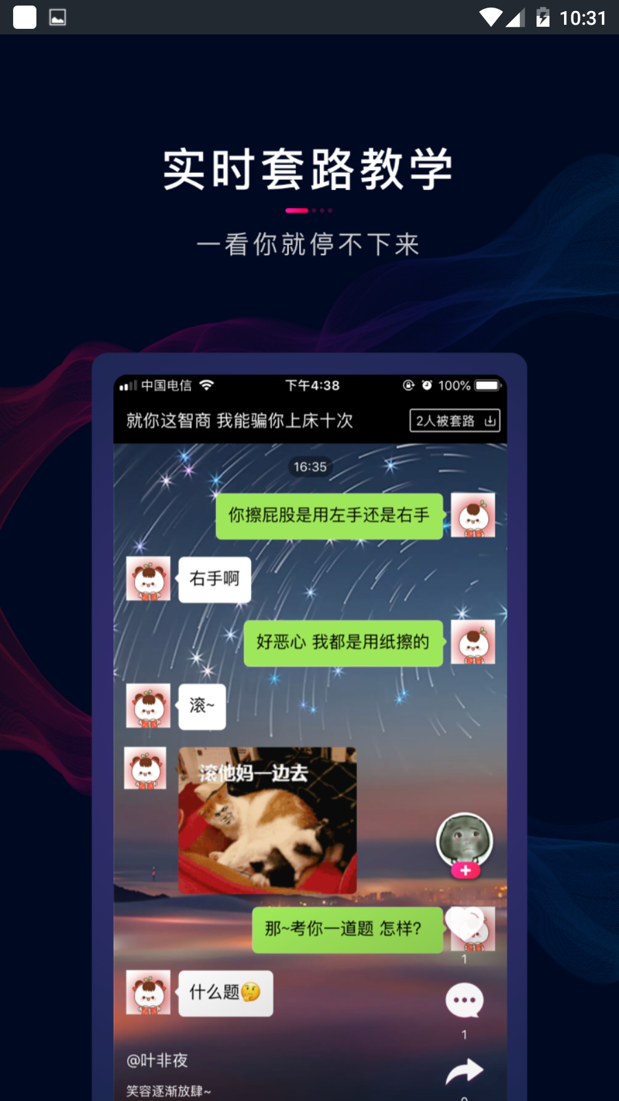 反套路:只要我跑的够快,套路就追不上我。独家反套路教学专区,教你识破各种社交陷阱,还有情景模拟训练提升应变能力。
