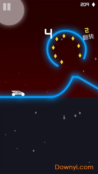 游戏采用直观的触控操作方式,长按屏幕即可让赛车持续加速,在合适的时机松开手指就能完成跳跃动作。当赛车腾空时,通过左右滑动屏幕可以控制翻转角度,完成720度特技翻转可获得额外分数加成。游戏特别设计了真实的物理反馈系统,当赛车仰面停滞超过3秒就会判定为翻车。玩家需要根据赛道地形合理规划跳跃时机,在保证安全的前提下尽可能多地收集金币和道具。