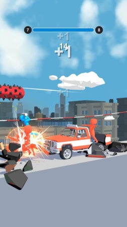 考验玩家的控制能力,以不同的力量完成攻击。游戏中的物理反馈系统会根据力度大小呈现不同效果,轻触屏幕可进行快速连击,长按则能蓄力发动强力踢击。