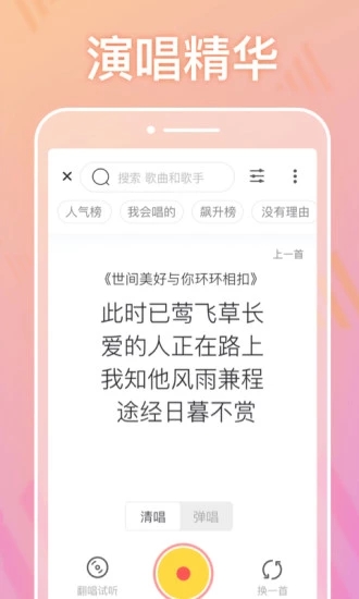 -清唱:清唱两句你喜欢的歌,用歌声展示你自己,系统会自动美化你的声音效果,让每一首歌都更动听