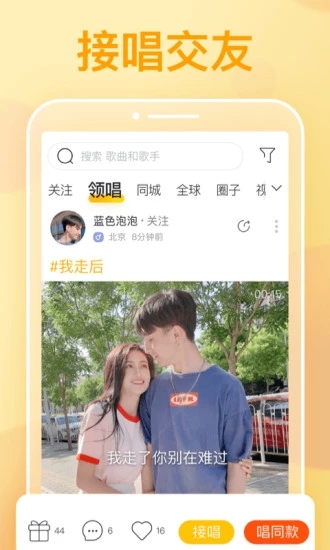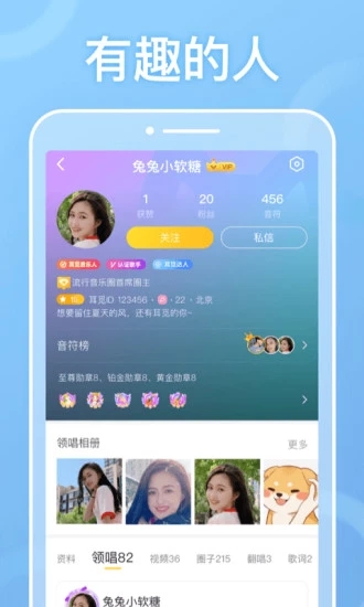 -接唱:选择你喜欢的歌曲和声音接唱,通过声音认识TA,支持多人接唱模式,打造属于你们的音乐故事