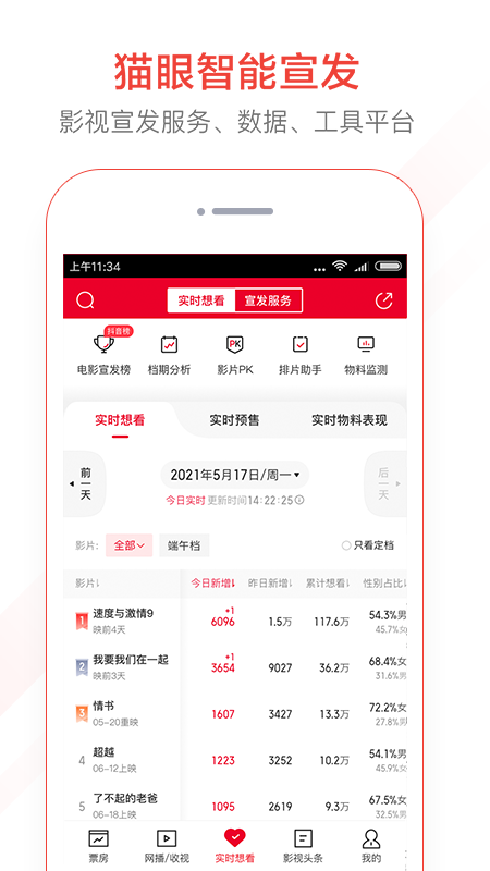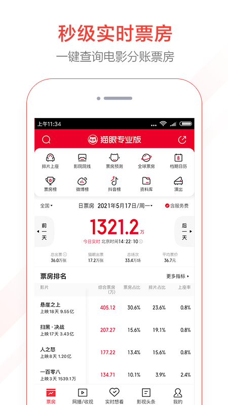 作为国内领先的电影数据分析平台,猫眼专业版拥有多项行业领先的特色功能。其秒级实时票房系统是国内首屈一指的票房监测工具,能够精确到秒地反映电影市场的最新动态。在网络播放量监测方面,软件整合了各大主流视频平台的播放数据,为用户提供全面的网播内容分析。电视收视监测功能则覆盖了实时关注度、市占率等关键指标,让用户对电视端的影视表现也能了如指掌。