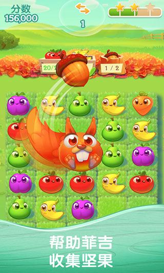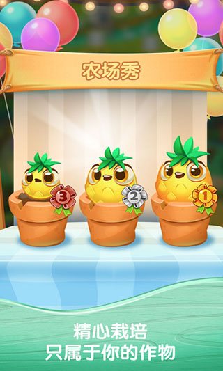 游戏包含超过180个精心设计的关卡,从简单到复杂循序渐进地考验玩家的消除技巧。随着关卡推进,会出现更多创新性的障碍设计和特殊规则,虽然基础操作简单易上手,但后期关卡需要玩家灵活运用策略思维才能通关。此外游戏还特别设计了"农场秀"竞技玩法,玩家可以在这里展示自己培育的超级作物,与其他玩家一较高下。全新加入的英雄角色系统为游戏增添了更多收集乐趣,而捣蛋的浣熊兰瑟则会时不时制造些小麻烦,为游戏过程增添意外惊喜。