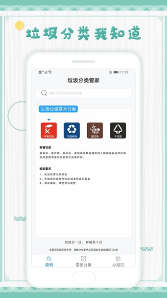 垃圾分类手册APP拥有全面的垃圾分类功能,用户可以通过多种方式查询垃圾类别。软件支持精准搜索和模糊匹配,即使输入不完整的垃圾名称也能找到相关信息。除了基本的查询功能外,APP还提供垃圾分类知识库,包含各类垃圾的详细说明和处理建议。用户可以在APP中学习垃圾分类技巧,了解不同地区垃圾分类标准的差异。此外,软件还具备智能提醒功能,帮助用户养成良好的垃圾分类习惯。