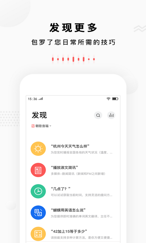 强大的辅助服务,可以查询天气、百科知识、新闻资讯等,数据来源权威可靠,每日自动更新最新信息;搜索歌曲名称、歌手、音乐风格、歌曲类型等,支持模糊搜索和语音搜索,即使记不清歌名也能快速找到;可以直接查看音频设备的均衡器,然后可以自由调节均衡器,提供10种专业预设模式,也支持手动精细调节每个频段。
