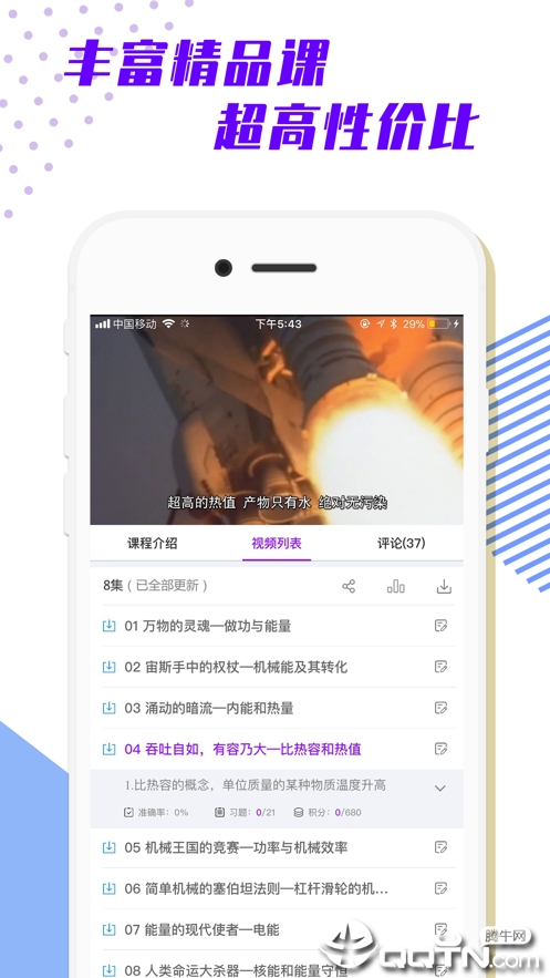 公式记不住。平台独创"公式推导树"功能,通过可视化方式展示公式演变过程。力学不会看不懂。运用3D建模技术动态演示受力分析,让抽象的力学概念一目了然。电路图看不懂。提供交互式电路模拟器,学生可以自由搭建电路进行实验验证。机械原理搞不懂。采用AR技术将机械结构立体呈现,支持360度旋转观察每个零部件。质量算不过来。内置智能计算器辅助解题,分步骤演示计算过程。超课满分物理。以好莱坞式教学,演绎真实物理场景,让学生身临其境的学习。课程内容涵盖声光电热等各个物理领域,通过情景剧形式讲解知识点。