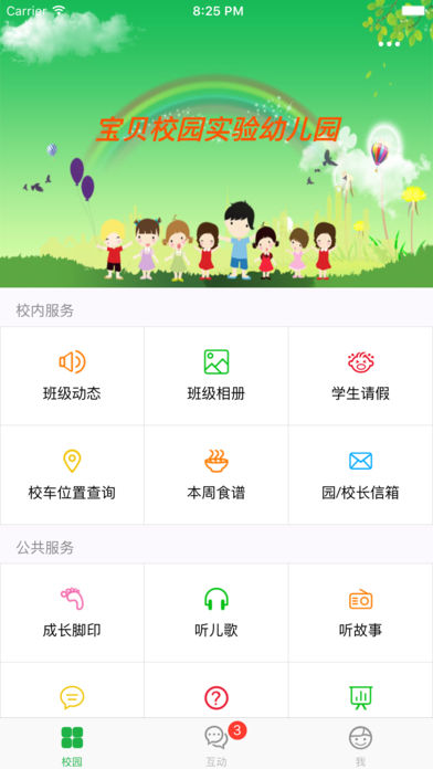第二种:打开宝贝校园APP,点击互动,点击右上角的'...'中的扫一扫登录。此方式需确保手机网络畅通,扫描时保持二维码完整显示,支持人脸识别快速验证。