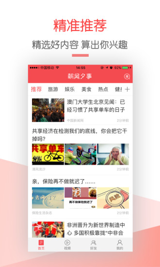 朝闻夕事汇聚各大门户的全平台新闻资讯,涵盖热点头条新闻、社会、科技、财经、体育、国内、娱乐、军事、汽车等不同类别内容。精挑细选,过滤无价值资讯,确保用户获取高质量信息。智能分析用户习惯,根据喜好推荐感兴趣内容,让阅读更高效。整合各类精彩短视频,总有一种口味满足你,无论是深度报道还是轻松娱乐,都能在这里找到。此外,平台还支持用户互动评论,打造更活跃的阅读社区。