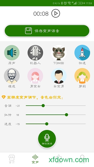 音效清晰:软件采用高清录音技术,确保音质清晰自然,让您的变声效果更加逼真。