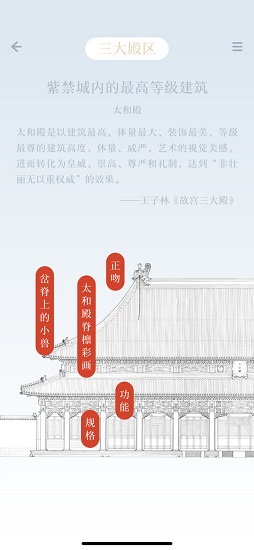 应用内置高精度三维地图,支持缩放查看太和殿、养心殿等主要建筑的精确坐标。用户点击地图上的琉璃瓦标记,即可获取该建筑的建造年代、功能用途等详细信息,还能查看不同季节的景观变化。地图特别标注了游客容易错过的隐秘角落,如乾隆花园的曲水流觞亭。