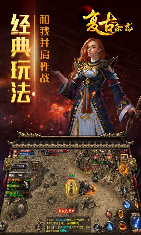 一、复古设定,三大经典职业还原,万人,带您畅享杀戮盛宴,属于你的传说!游戏画面采用复古风格,同时加入现代光影效果,让经典与时尚完美结合。