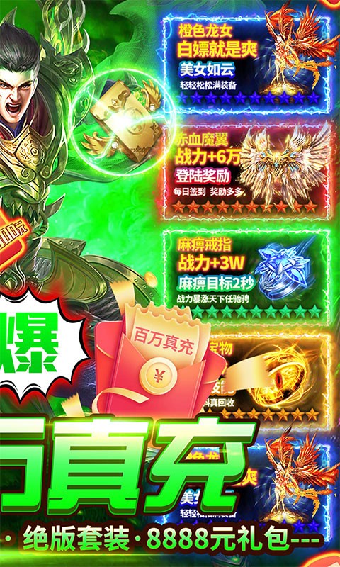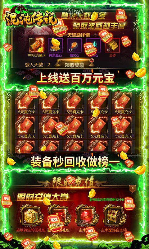 新玩家注册即享VIP15尊贵身份,百万元宝和十亿金币助力快速成长,更有专属热血神剑与绝版时装彰显个性魅力。GM万抽系统打破传统抽奖限制,通过游戏内获取的GM令可无限参与抽奖,所有珍稀道具100%掉落保证。特别设置的充值返利活动最高可达10倍返还,每日限量1折特惠道具供不应求。升级系统经过优化,玩家可体验一刀直升百级的快感,同时每日登录都能领取价值百万的游戏资源。真充卡系统彻底消除付费门槛,各类珍稀材料全天候无限量供应,GM商店更提供绝品装备1折抢购机会。